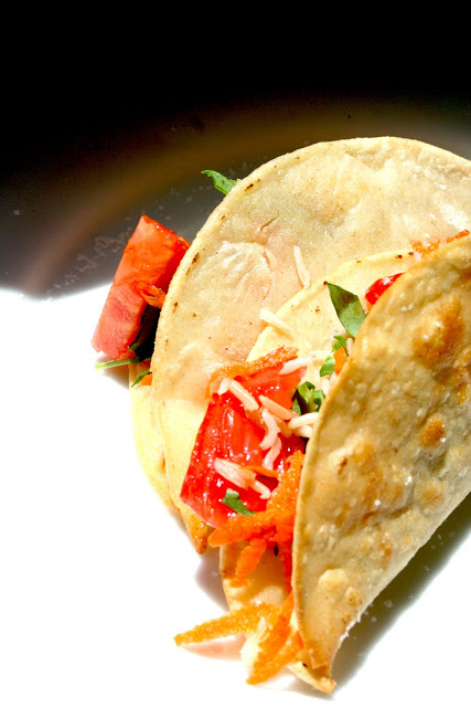 Grated carrot is essential to these tacos.